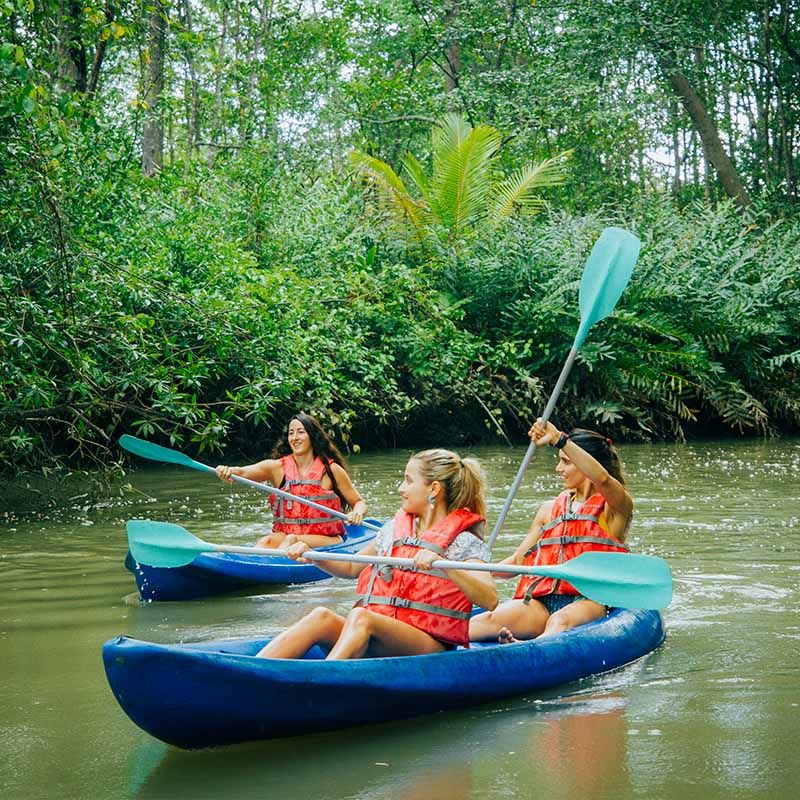 Lago Arenal Lake is the largest lake in Costa Rica, and although artificial, it offers amazing views and enchanting surrounding natural atmosphere. Come and enjoy the unique experience of canoeing or kayaking on Lake Arenal with some unbeatable views of the Arenal Volcano and its lush green surroundings. You will explore various areas of the lake in search of exotic wildlife, including monkeys and beautifully colored tropical birds. To further enjoy the serenity, we will stop at a small island where you will be served some of Costa Rica’s fresh tropical fruit. Do not leave Arenal without this experience!