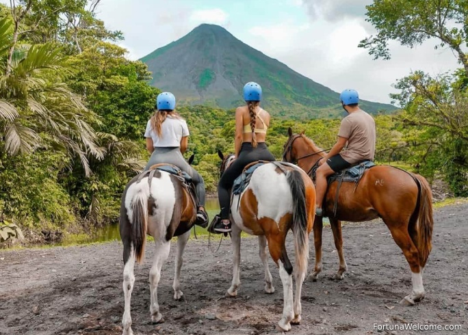Enjoy for 2.5 hours a nice and calm horseback riding featuring the Arenal Volcano and its surrounding rainforest as the main natural scenery, at our horseback riding camp you can enjoy a key nature tour for your Costa Rican vacation, on very well-tended horses.